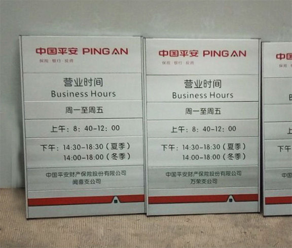 中國(guó)平安營(yíng)業(yè)時(shí)間牌