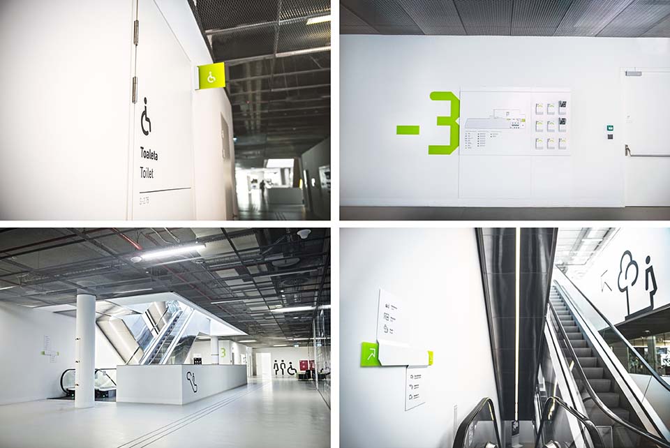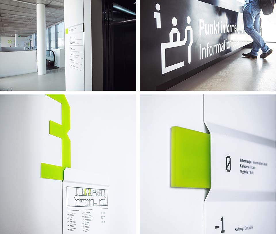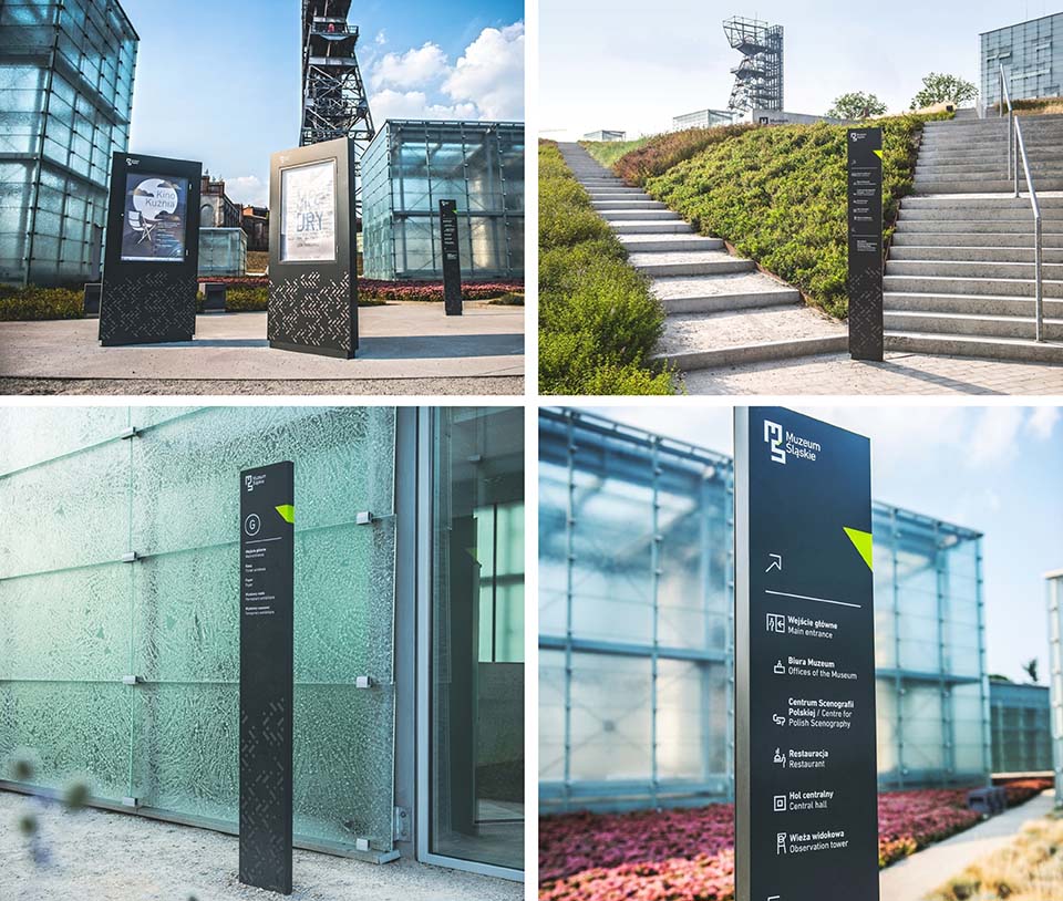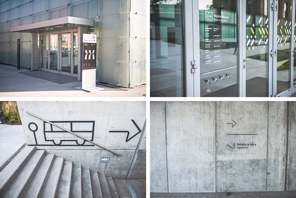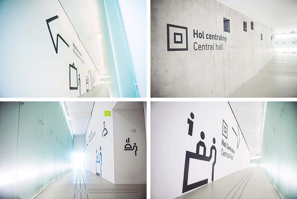 西里西亞博物館就是在這樣的背景下在某個(gè)煤礦廢墟上興建。該用地處于新興發(fā)展區(qū)域,項(xiàng)目需要具有前瞻性與整體性,成一個(gè)在城市中引發(fā)可持續(xù)變革與振興的熱點(diǎn)。其導(dǎo)視系統(tǒng)設(shè)計(jì)包括開(kāi)發(fā)西里西亞博物館新址的行政大樓,波蘭風(fēng)景中心,地下停車場(chǎng)等的空間圖形和裝飾元素。為了適應(yīng)這個(gè)建筑復(fù)雜的結(jié)構(gòu)和設(shè)計(jì),設(shè)計(jì)師提供了一套設(shè)計(jì)精良完善的指示系統(tǒng)。