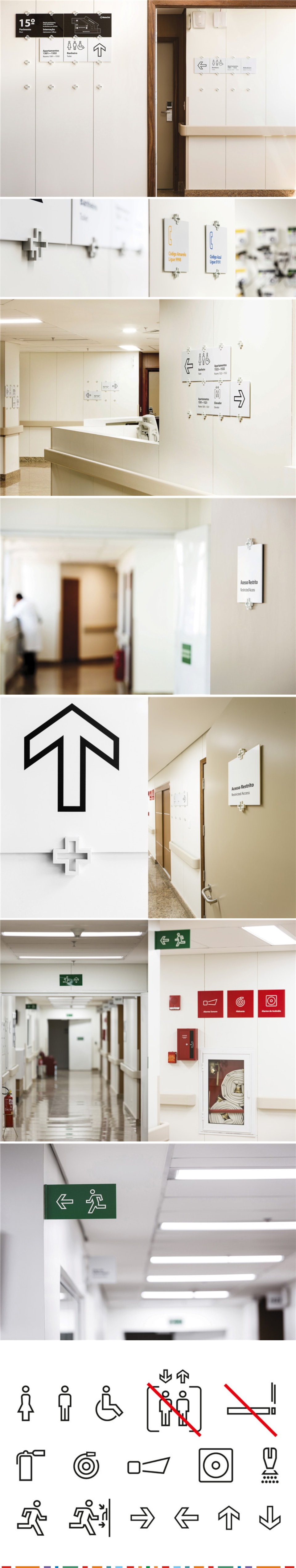 Mater DEI Hospital(圣母醫(yī)院)是葡萄牙·馬耳他當(dāng)?shù)卮蟮墓⑨t(yī)院,同時(shí)也是歐洲大的醫(yī)療建筑之一。擁有825個(gè)床位和25間手術(shù)室。其內(nèi)部標(biāo)識系統(tǒng)涉及空間內(nèi)各區(qū)域引導(dǎo)信息的設(shè)計(jì)。標(biāo)識采用模塊化板材制成,方便更換與拆卸,而不影響整體設(shè)計(jì)外觀。“十字架”象征著救治、救贖,在設(shè)計(jì)中,設(shè)計(jì)師使用十字架作為標(biāo)牌元素之間的連接元件,有效傳達(dá)了醫(yī)院救死扶傷的理念,增加了醫(yī)院的亮點(diǎn),而多種元素排版的象形圖則賦予了醫(yī)院更多的獨(dú)特性。