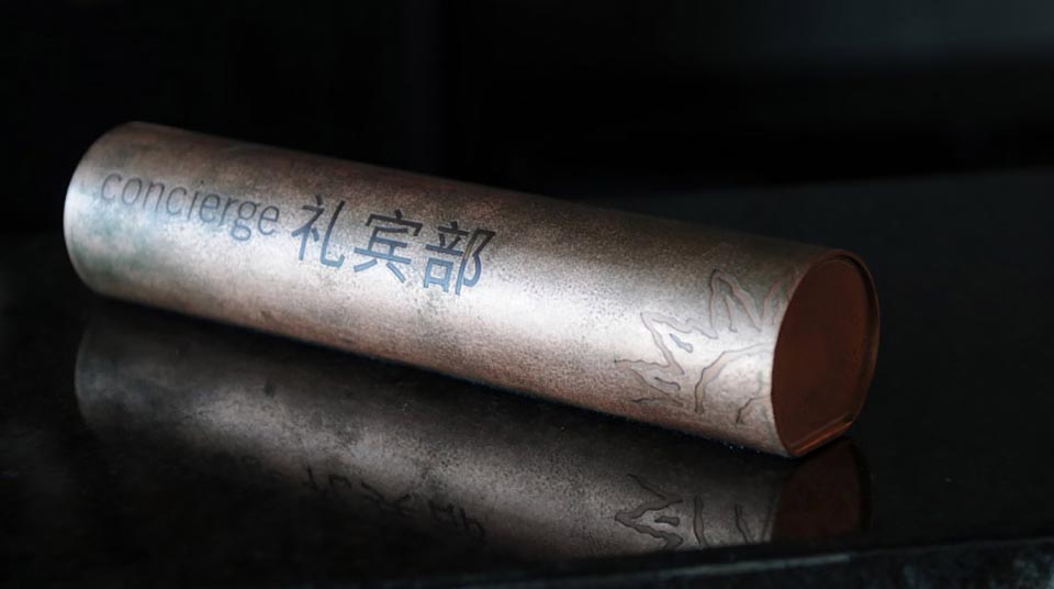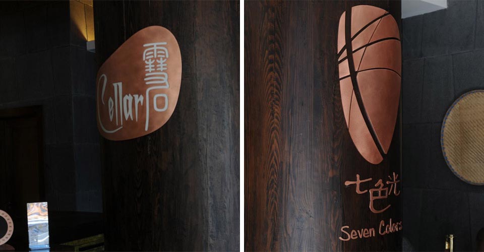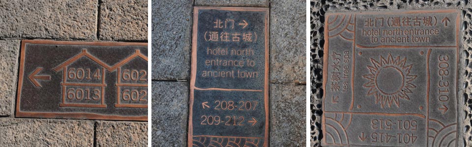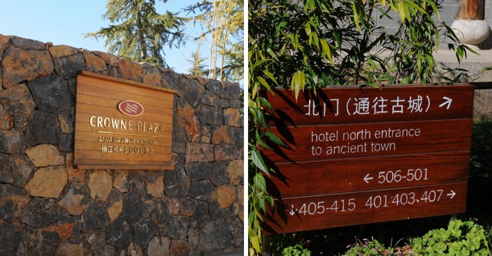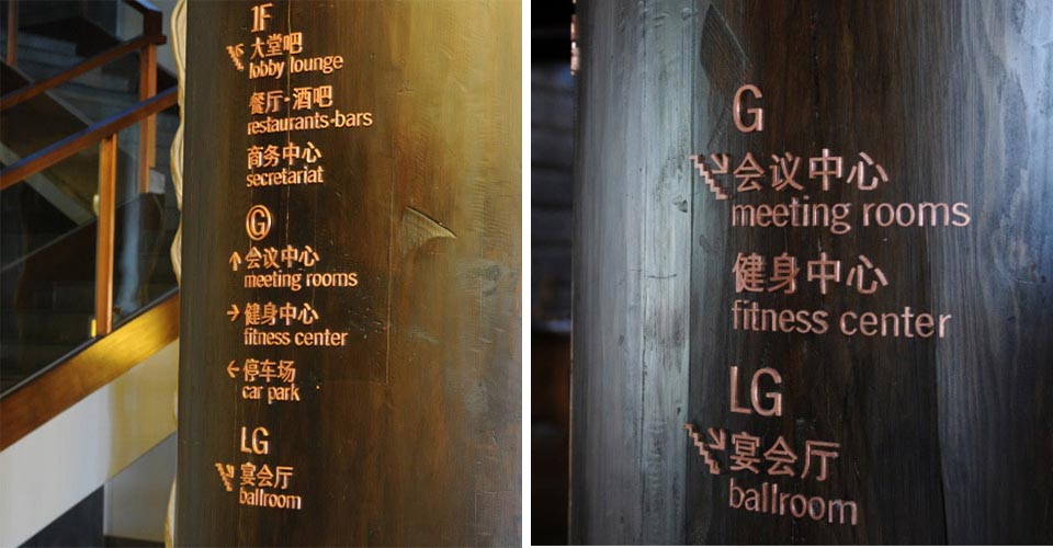案例一,麗江皇冠假日酒店導(dǎo)視設(shè)計,吸取麗江東巴文字、太陽圖騰等元素,體現(xiàn)5星級度假酒店古樸、低調(diào)奢華的氛圍。此作品獲2013年“華鼎獎”一等獎。