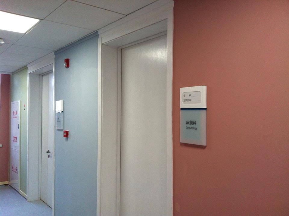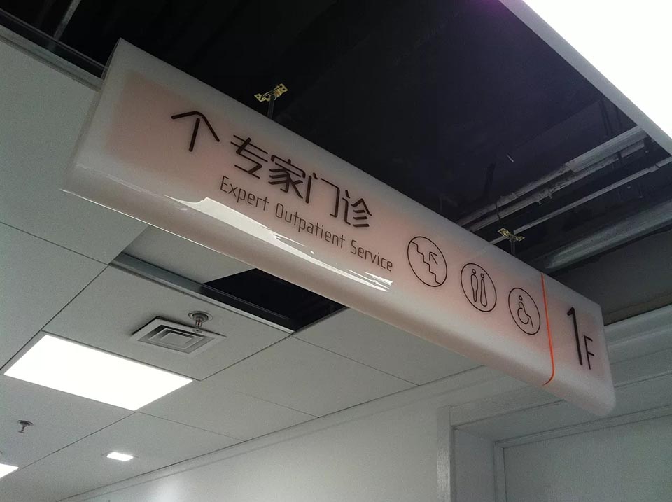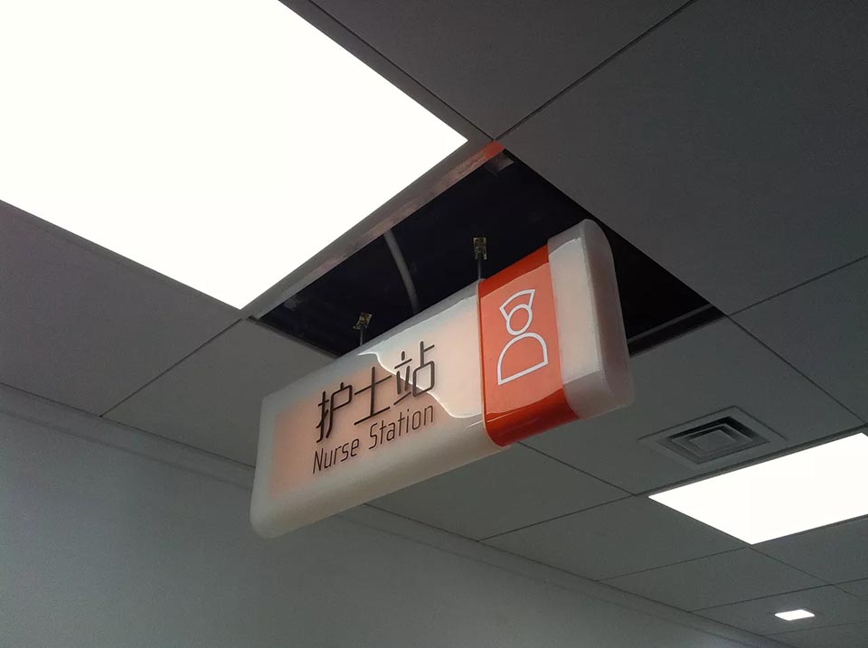 案例二。北京裕和醫(yī)院導(dǎo)視設(shè)計,選用溫和色彩與柔和造型來突出對生命的呵護。
