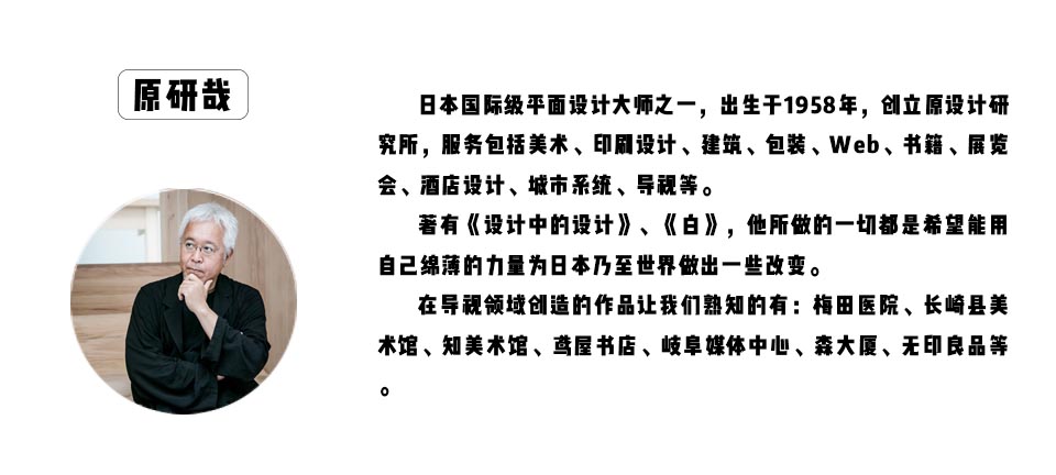 就像上文所說,顏色反應(yīng)情感,原研哉所說的”白“是根據(jù)品牌特性選擇材料本身的顏色即自然色或單一的顏色填充導(dǎo)視設(shè)計(jì)作品的設(shè)計(jì)意圖。沒有多余顏色的紛擾,這種”白“是具有啟發(fā)性的簡潔之美,并能深化顏色本身所反映出的人類情感,只需要很少的時(shí)間便能讓人們記住它,同時(shí)引起共鳴。